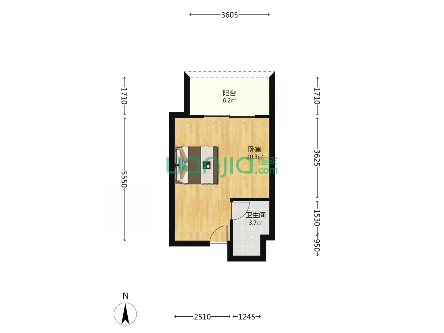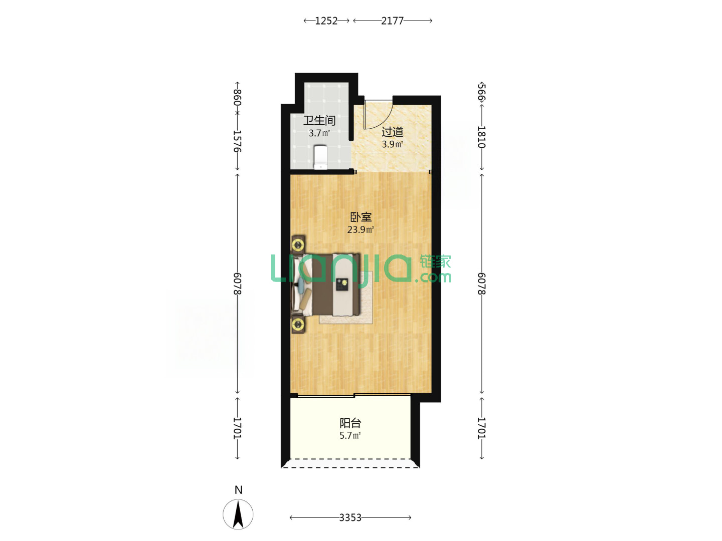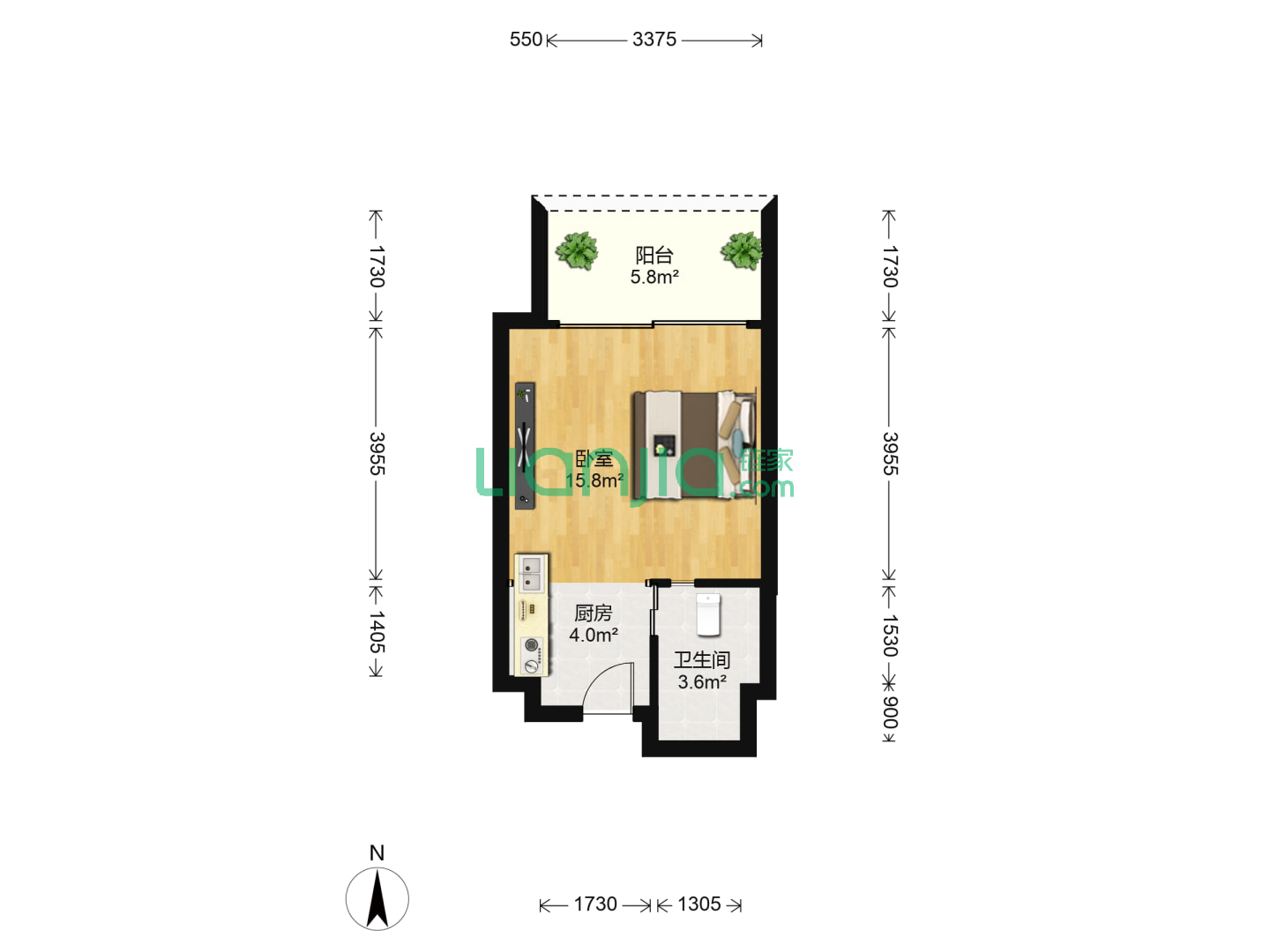1室1厅1卫 46㎡